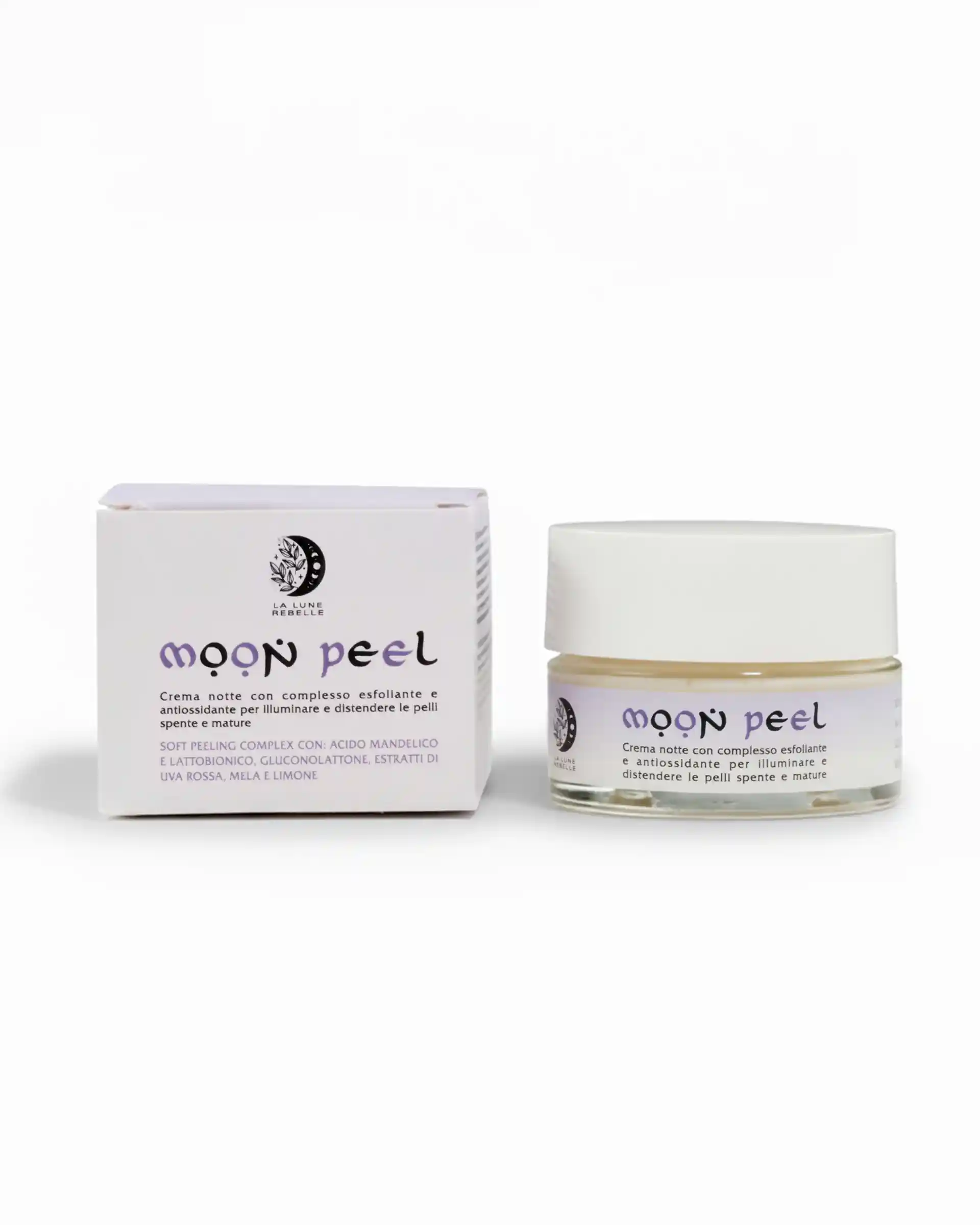 MOON PEEL è una crema viso leggera e setosa, un trattamento notturno dedicato alle pelli spente e segnate che sono alla ricerca di nuova luce e benessere.